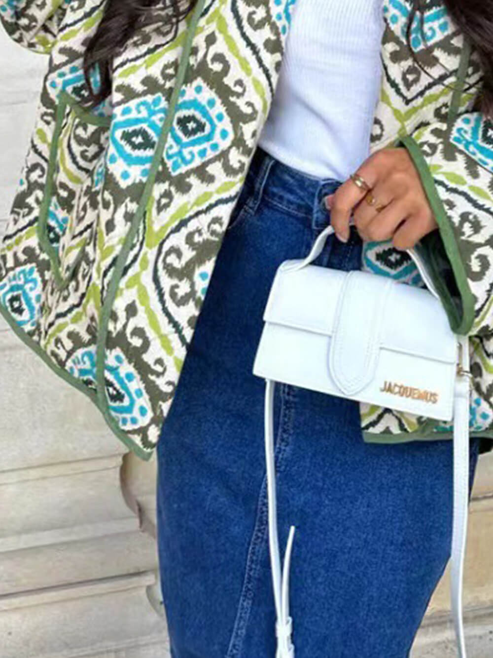 Printed Pockets: The standout feature of this coat is its printed pockets. These unique pockets add a touch of personality and style to your outfit. making a statement wherever you go.