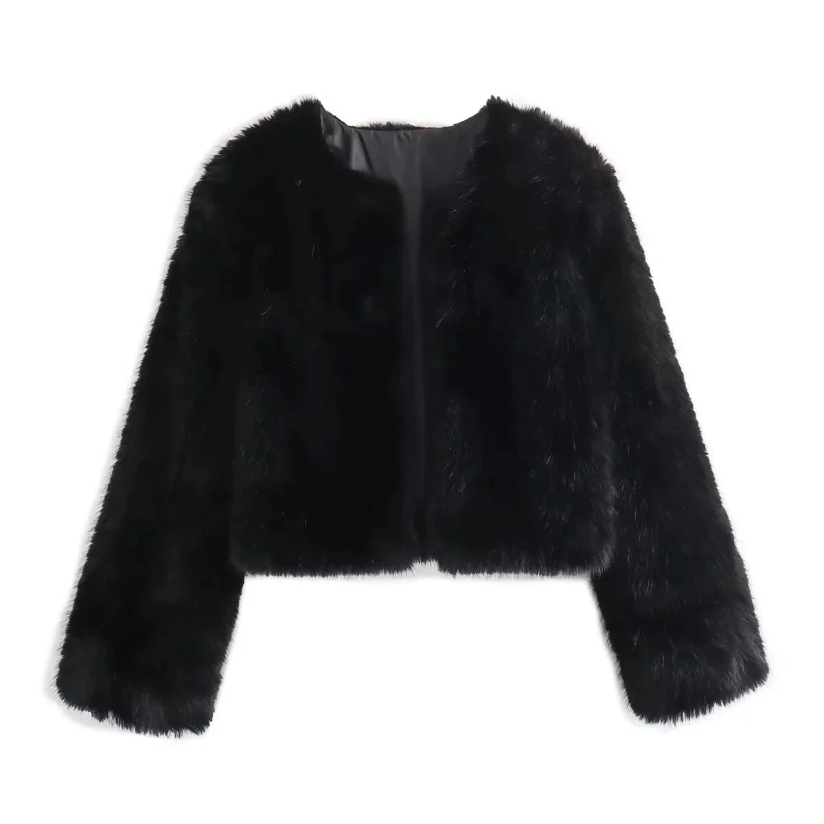 Faux Elegant Pink Loose Long Cardigan Luxury High Coat
