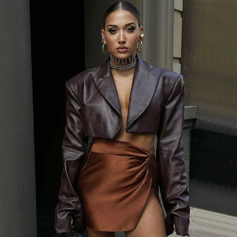Faux Fashion Lapel Collar Long Sleeve Cropped Y2K Streetwear Autumn Jacket