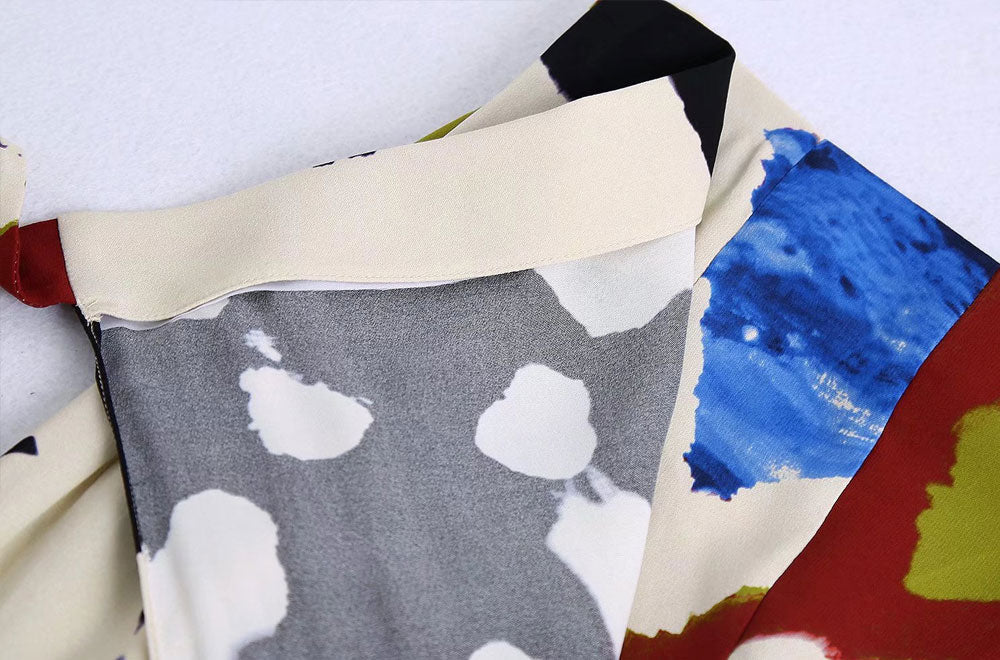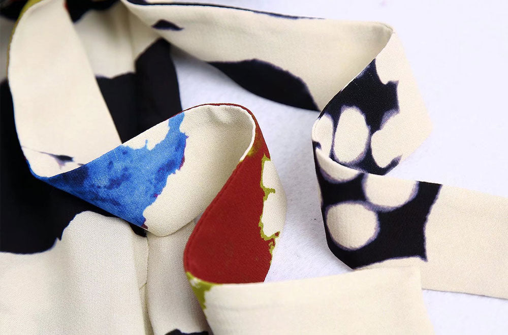 Fiona Printed Wide Leg Wrap Trouser. Gorgeous abstract geometry print wide leg pants with a wrap front tie details. Flowy fabric in full floor length. Pair with a knit top. solid blouse or printed top for a print on print style.