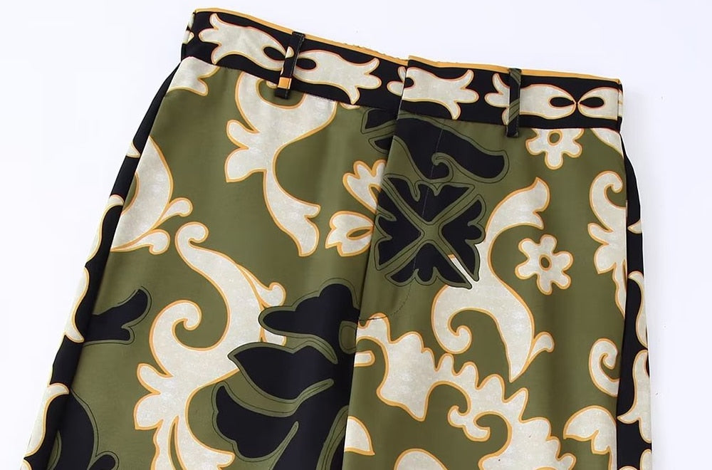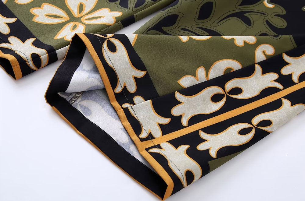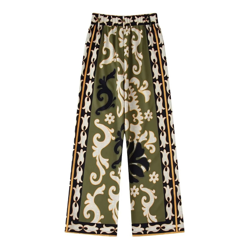 Fleur-de-lis Prints Tunic Top / Wide Leg Pants