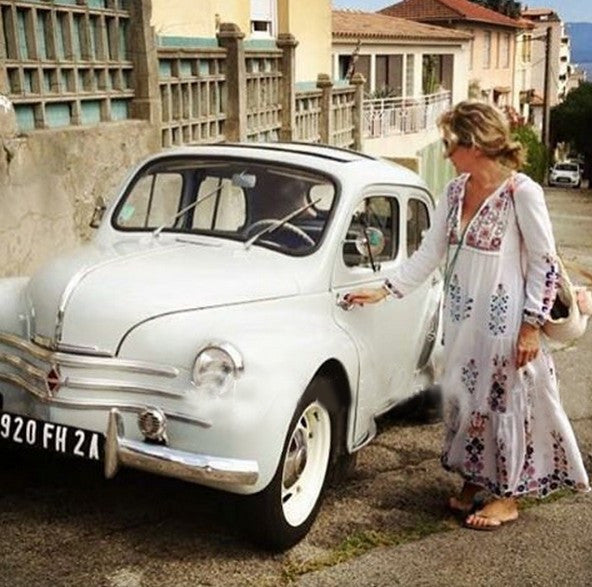Floral Embroidered Maxi Folk Dress. Another popular style folk dress with floral embroidery. This maxi cotton dress is a must for summer. Breezy and casual style dress with European floral patterns and lace-up tassel front. Great for Spring/Summer.Â