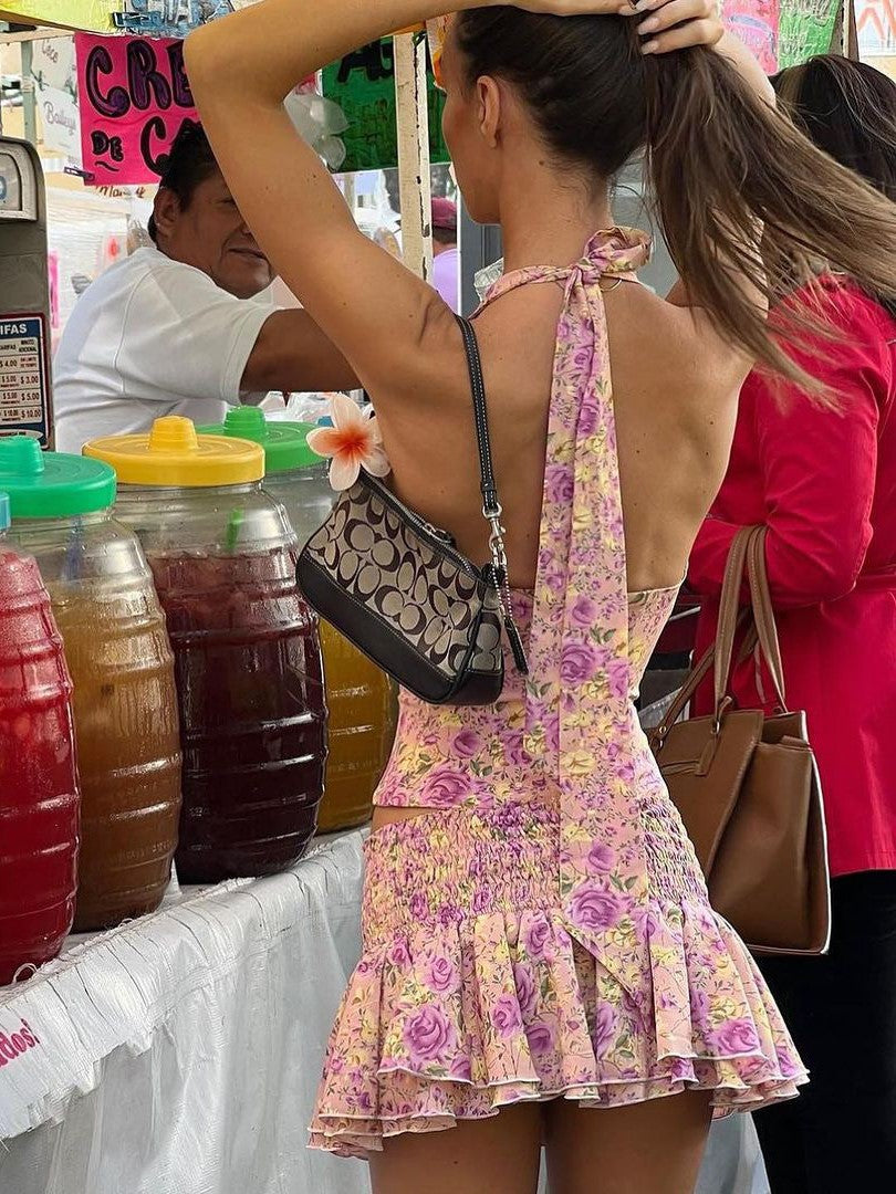 Vibrant Floral Print: The lively floral pattern across both the top and skirt adds a pop of color and energy. capturing the joyful essence of Y2K style. The coordinated print ensures a seamless and eye-catching ensemble.