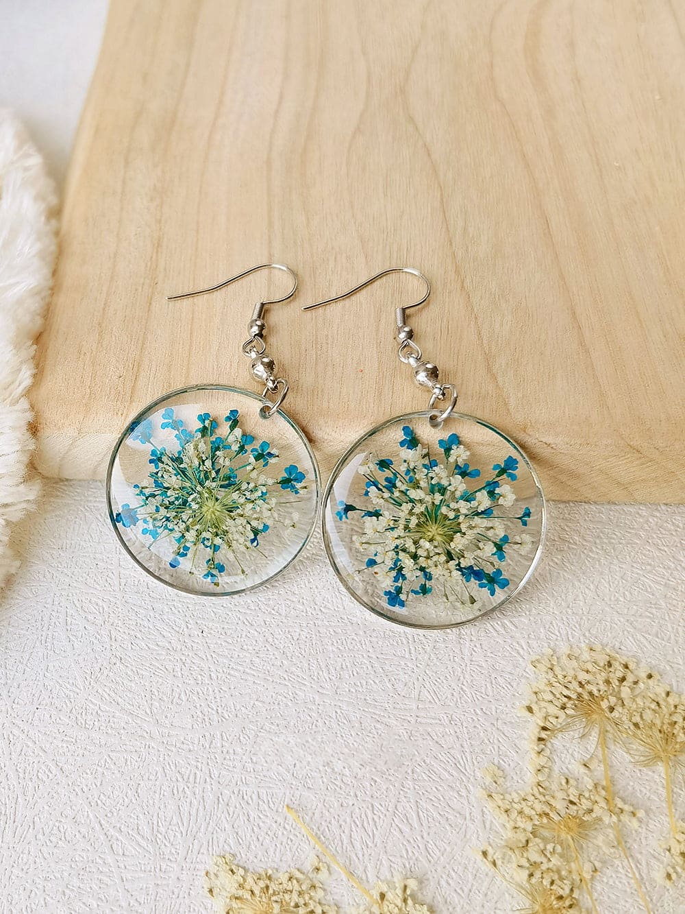 Forget Me Not Queen AnneLace Resin Pressed Flower Earrings