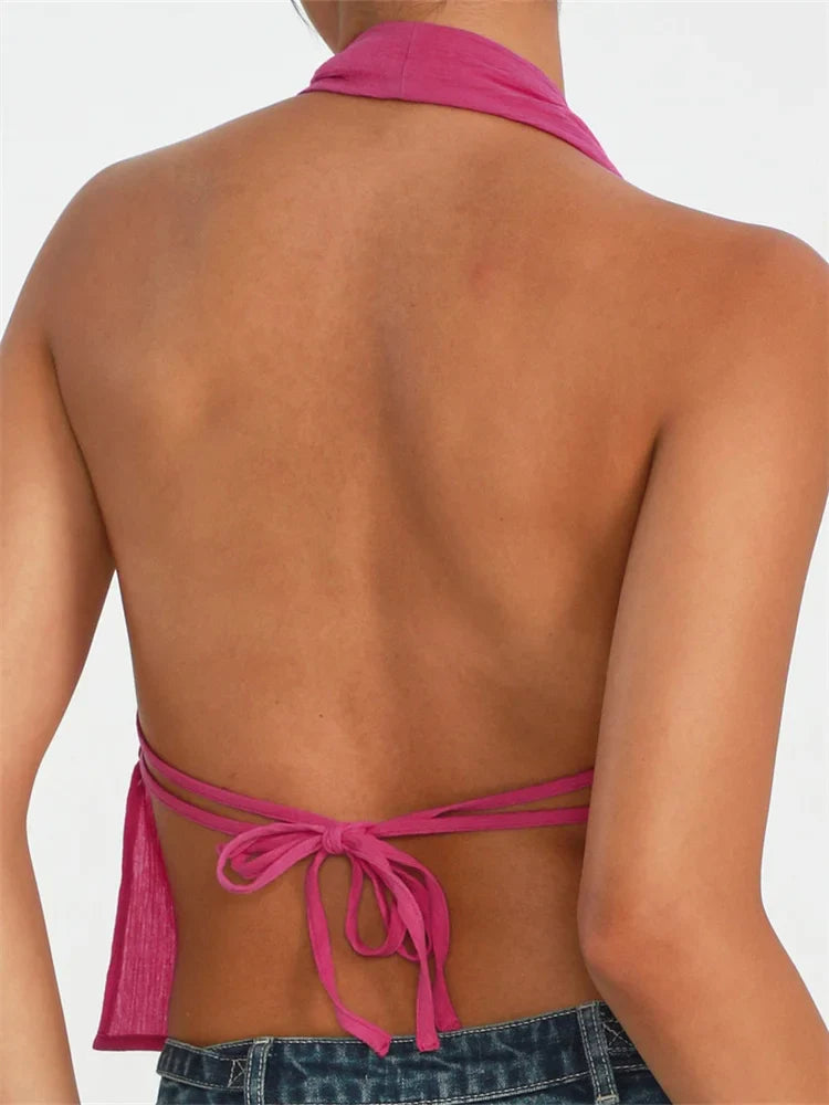 Front Split Low Cut Halter Sleeveless Backless Off Shoulder Lace-up Mini Vest Streetwear Crop Top