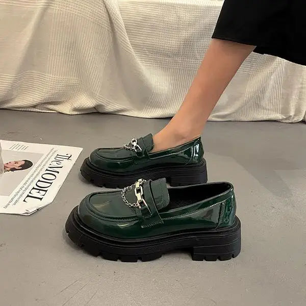 Fur Platform Black Flats Preppy Dress British Style Autumn Oxfords Loafers