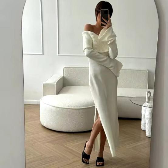 Knit your way into the spotlight with our Gaelle Off The Shoulder Knit Sweater Dress! This trendy dress features flattering off the shoulder. flare sleeve and sexy side slit design and made with soft knit fabric for maximum comfort. Stand out from the crowd and show off your elegant side with this flattering dress!
