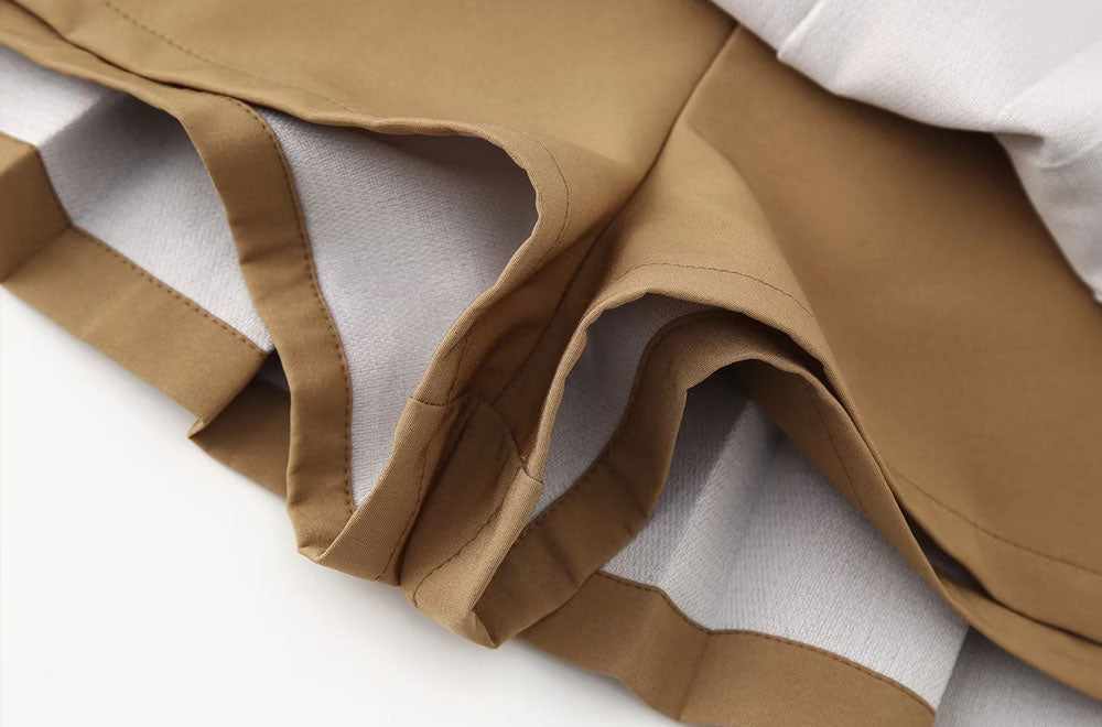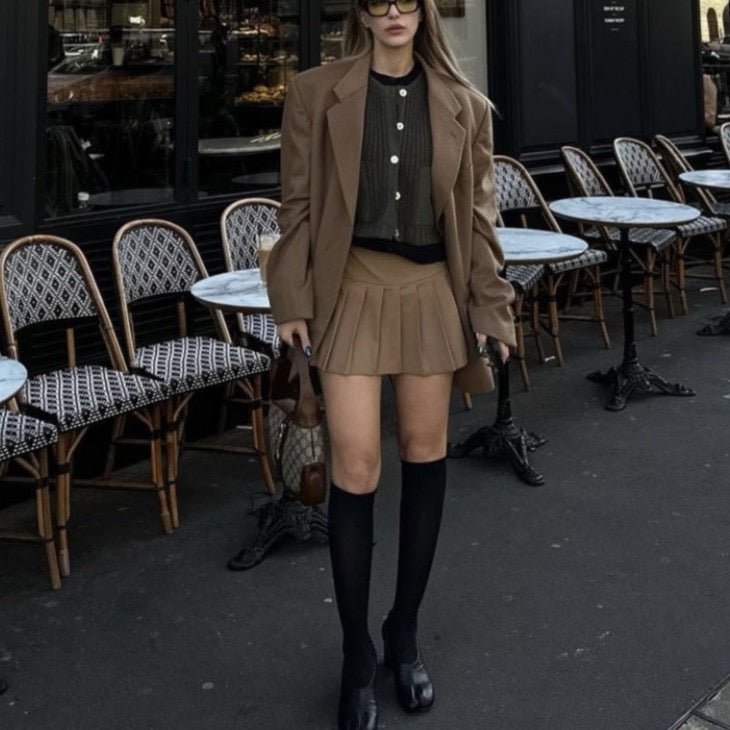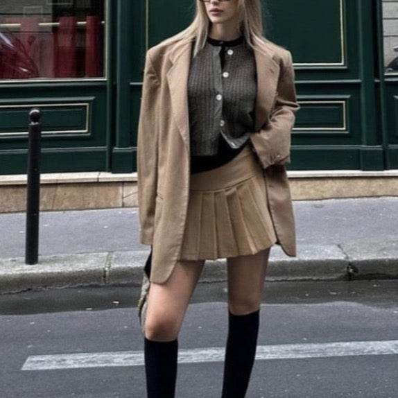 Genny Pleated Mini Short/Skirts - 2 Colors. Chic school girl uniform style mini short/skirt with pleated bottom. What not to love? 2 colors - khaki or gray.Â