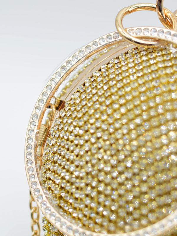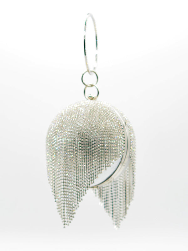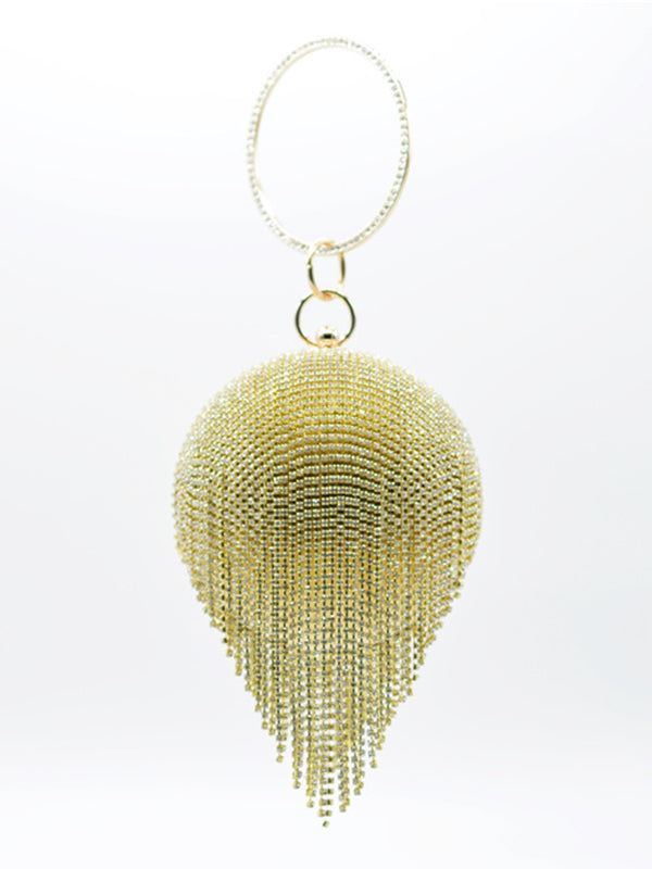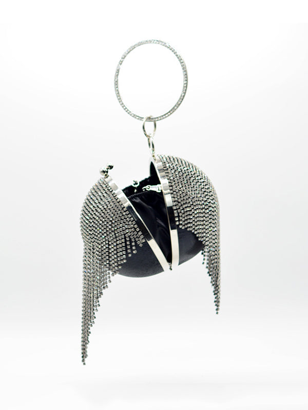 Geometric Rhine Stones Solid Color Tasseled Handbags