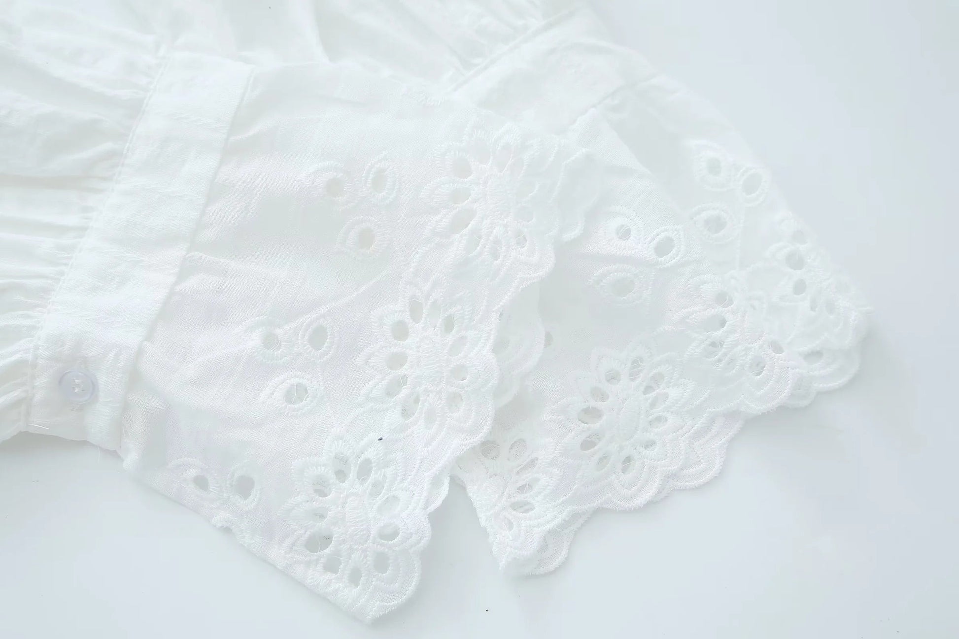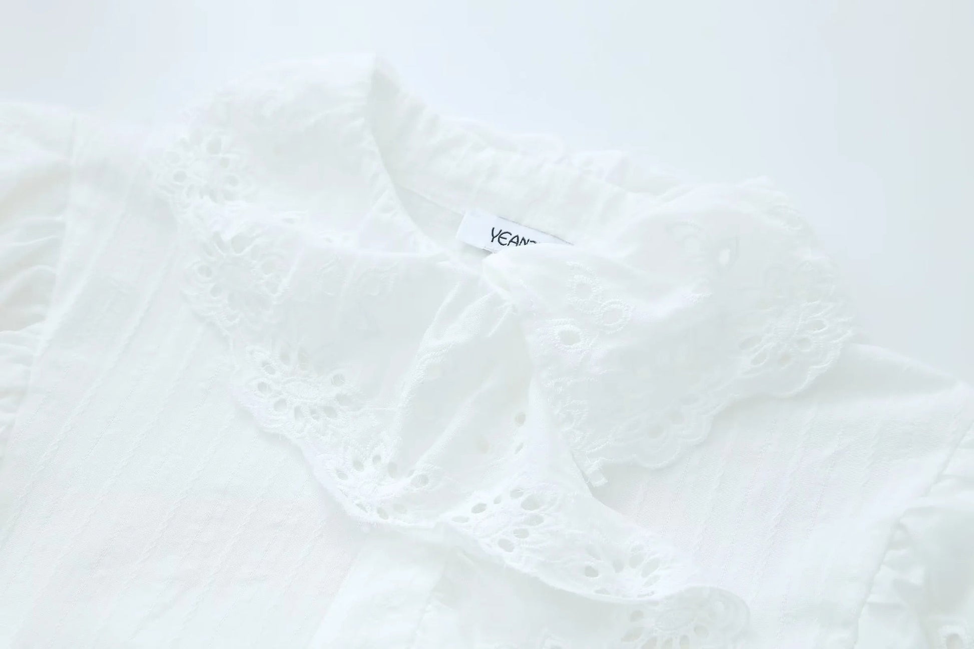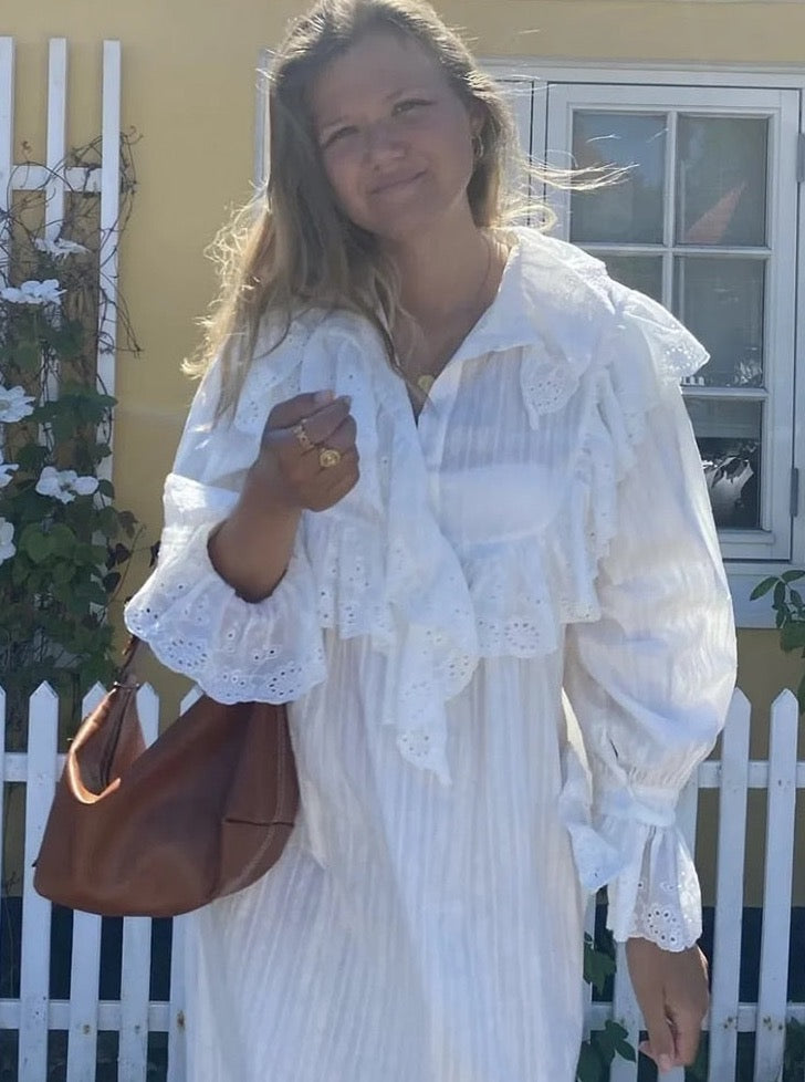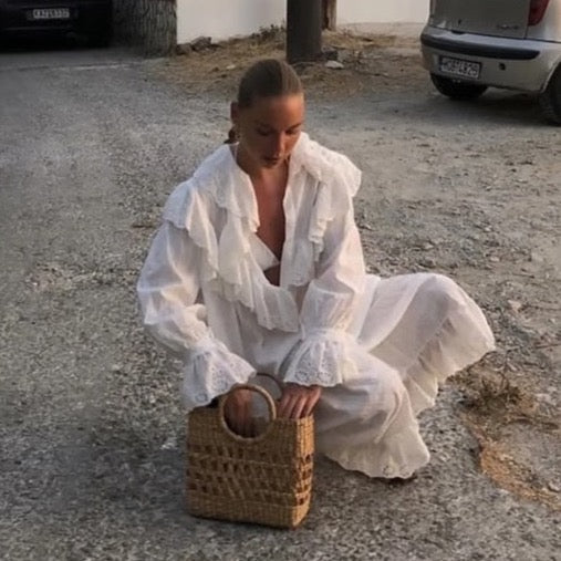 Geraldine Cotton Frill Lace Dress. Absolutely lovely cotton frill lace dress with square sailor neckline and edge embroidery details. Oversized bohemian style that just like little girl's cotton doll dress but these are for grown ups. Simply lovely.