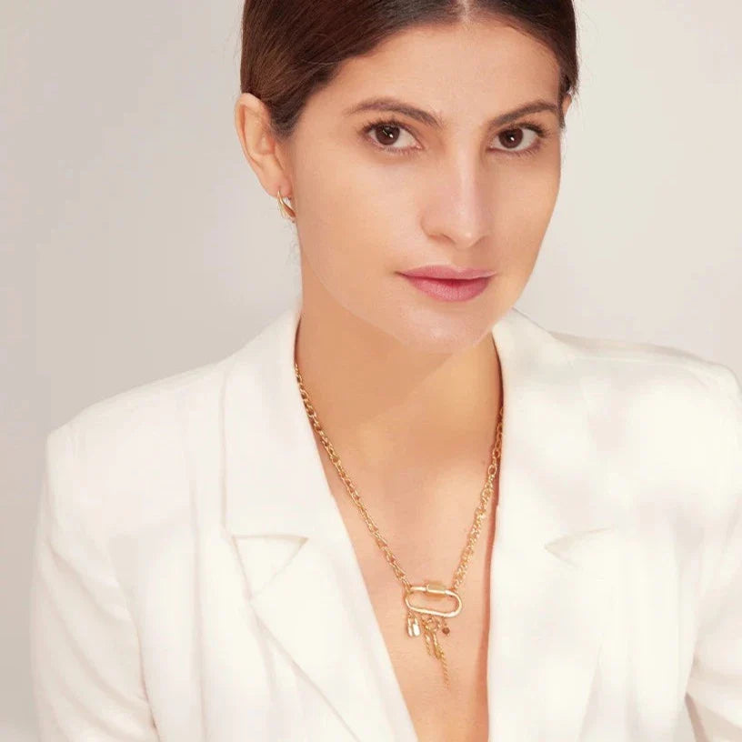 Unlock a whole new level of style with our Golden Key Lock Charm Pendant Necklace. The intricate design of the golden key and lock exudes elegance and sophistication. Elevate any outfit with this luxurious accessory that is sure to turn heads. A must-have in your collection.