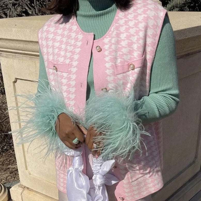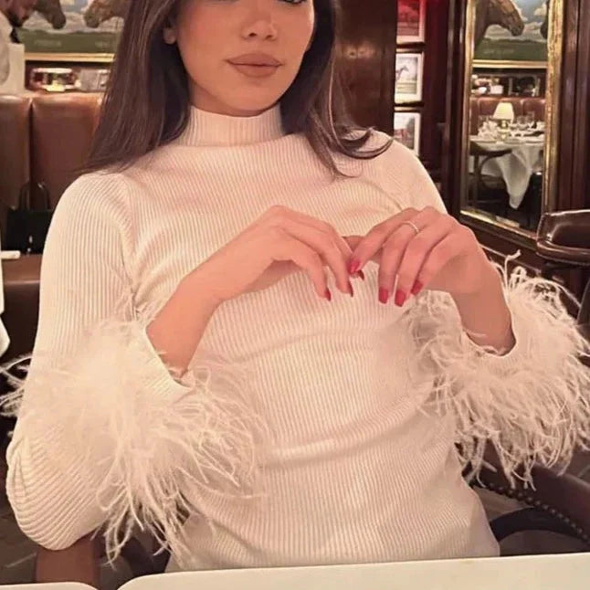 This comfy cotton ribbed top is the perfect way to add a little pizzazz to your outfit! Featuring a feather cuff high neck design. this top is the ideal combination of playful and stylish! Who says you can't have both? When we need that something extra. do heather feather!Â