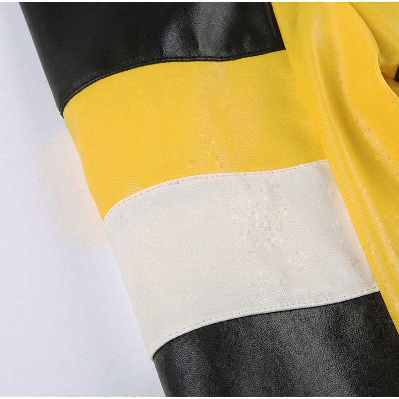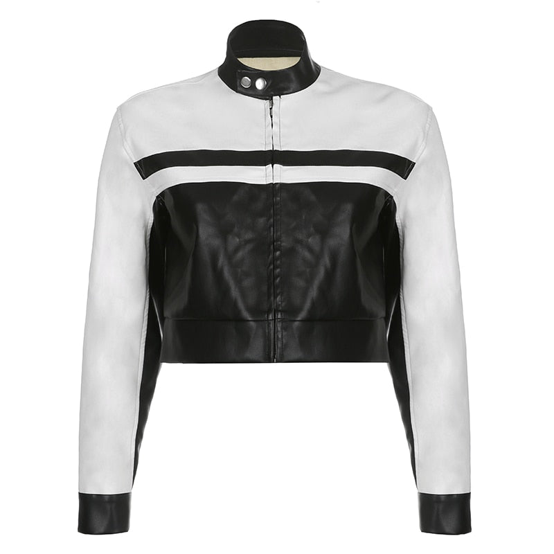 Hemi Striped Faux Leather Cropped Racer Jackets