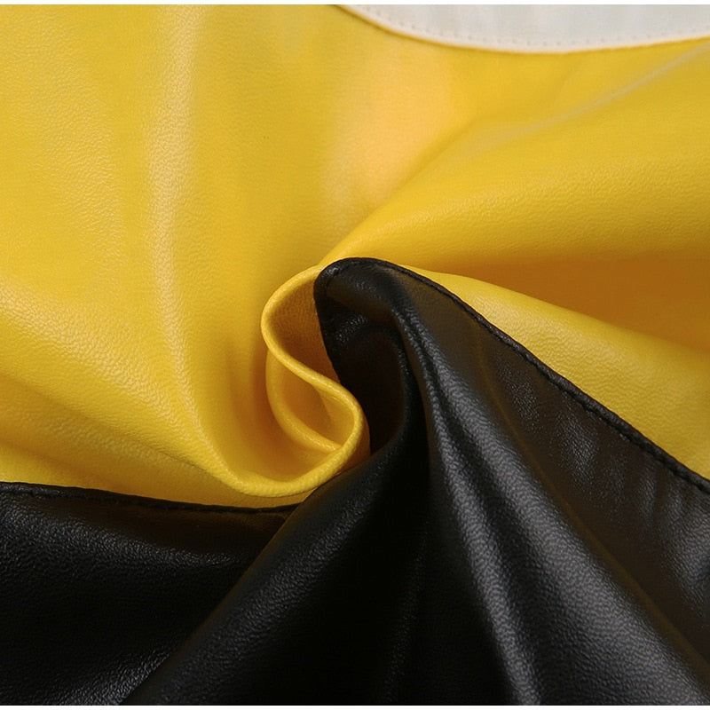 Put some pep in your step with this Hemi Striped Faux Leather Cropped Racer Jacket! Perfect for a night out ââ‚?or just a night of chillin' ââ‚?this stylish jacket is sure to bring a little spunk to your wardrobe. Plus. you'll be lookin' fly while doing it! (You can thank us later).