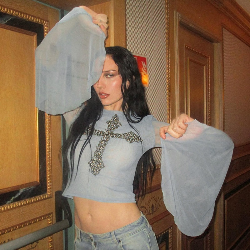 Isolde Gothic Cross Sequin Tissue Crop Top
