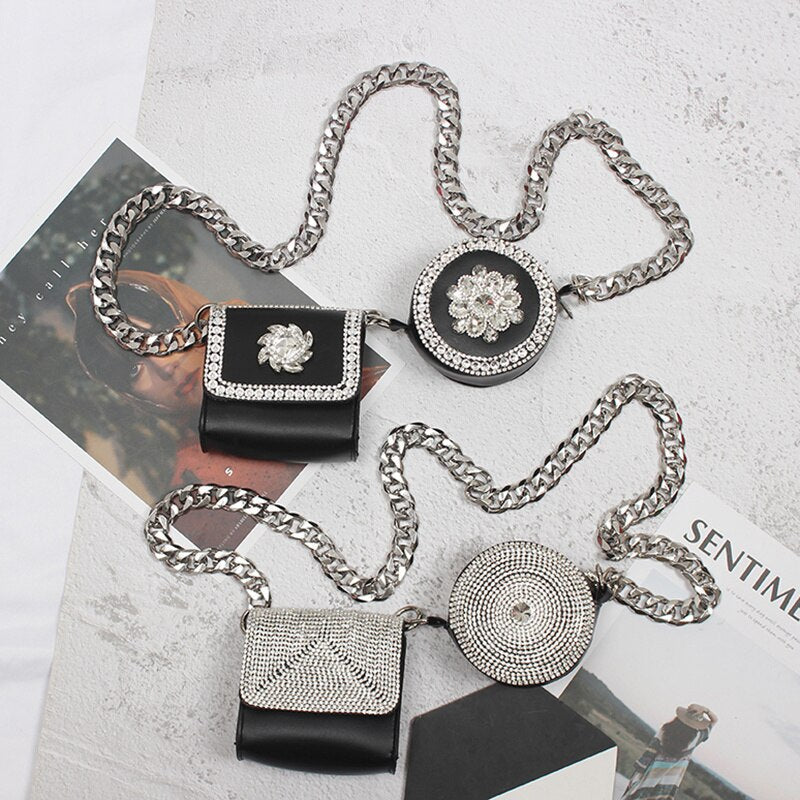 Add some style to your look with Joelle's Embellished Fanny Belt and Shoulder Bags - 2 style bags in one for the price of one! These fashionable accessories feature stunning crystal embellishments and chunky chains for a rock'n roll to sassy. chic looks that are perfect for any fashion forward occasions. Get ready to rock your style in multi ways!Â