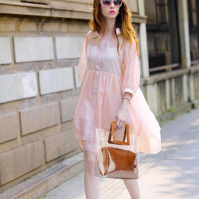 Addison Clear PVC Tote Bags  - 4 Colors. Popular clear PVC trapezoid shape bag with rectangular croc pattern square handle with a matching inner pouch. 4 color styles.