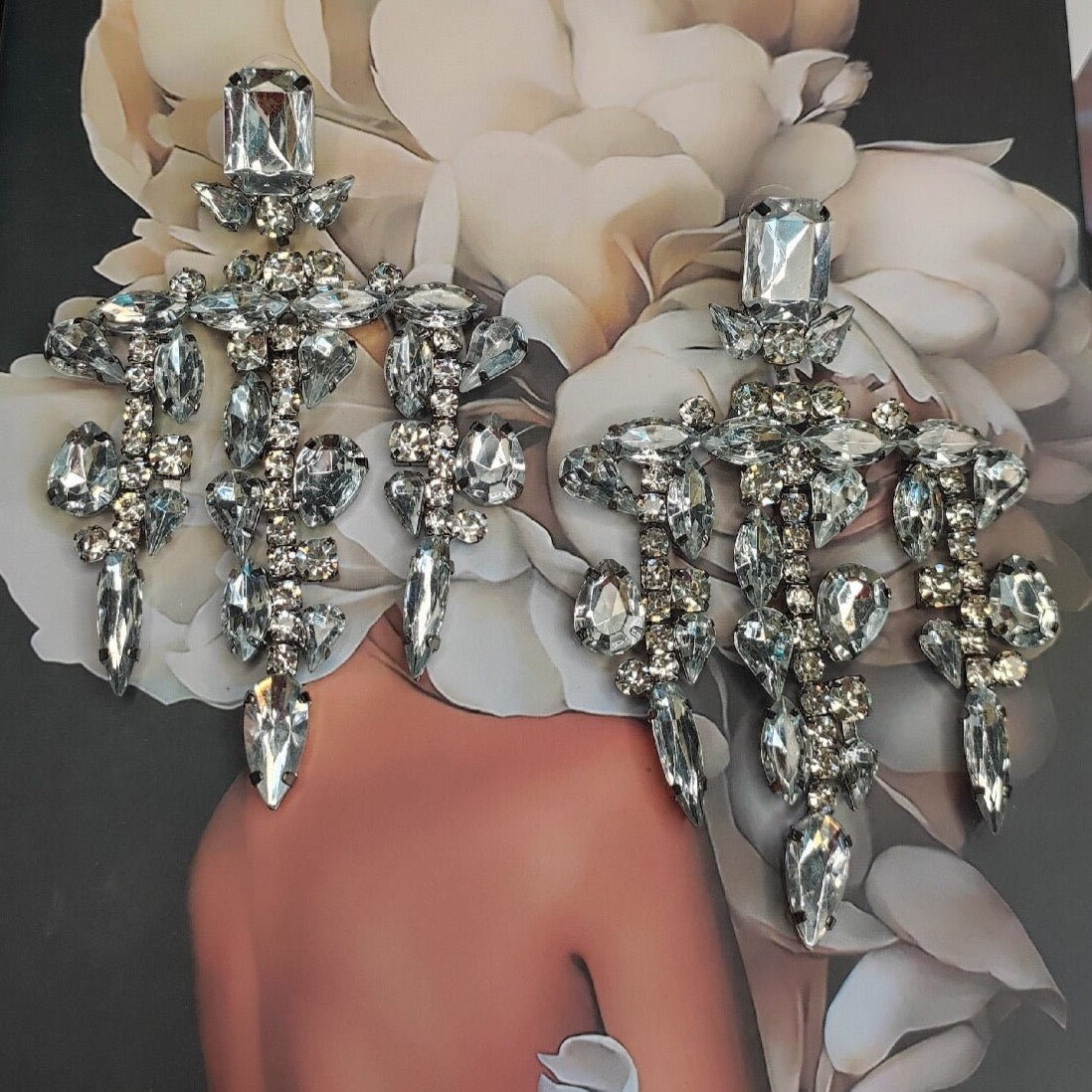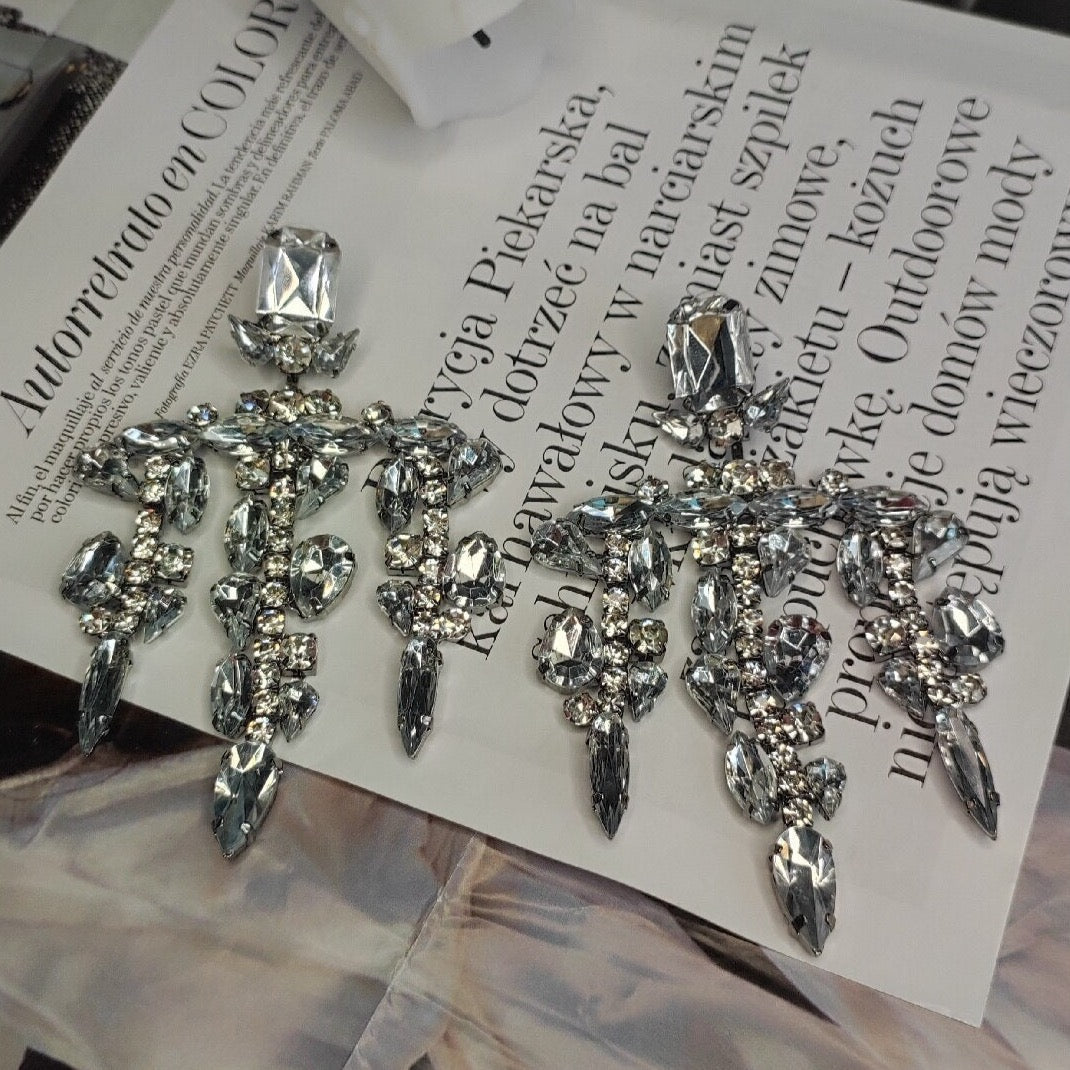 Jumbo Rhinestone Crystal Tassel Drop Earrings
