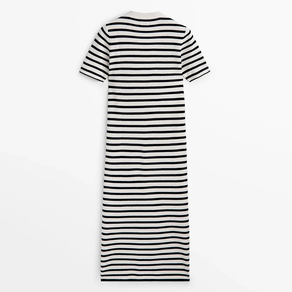 The Karina Stripe Button Down Knit Dress is the perfect combination of style and comfort. With its classic button-down design and knit fabric. it offers effortless wear and a flattering fit. Stay on-trend with the stylish stripes while feeling comfortable all day long. Upgrade your wardrobe with this versatile dress.