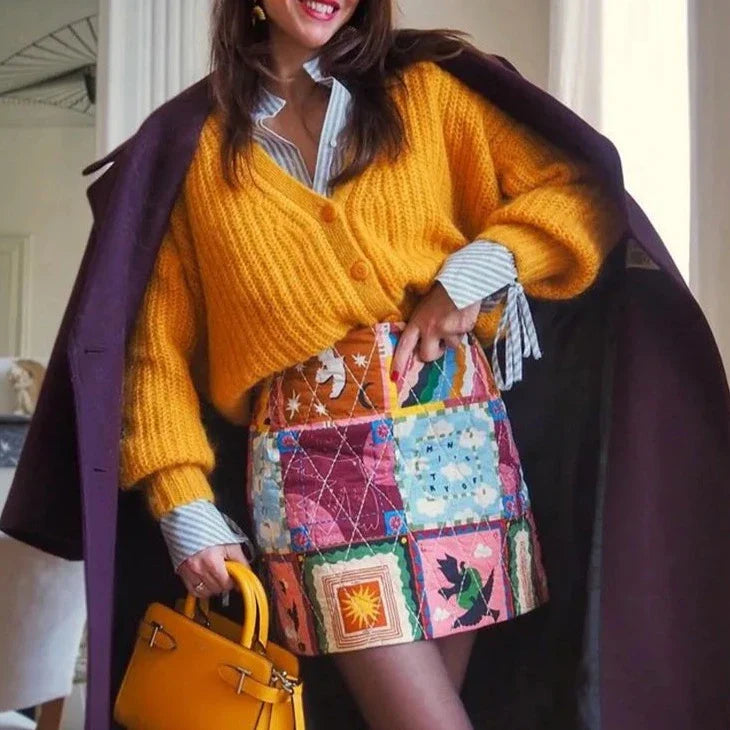 The Kayte Bohemian Printed Quilted Cotton Jacket is a playful and versatile addition to your wardrobe. Crafted with cotton fabric. it features a unique bohemian-inspired print and cozy quilted lining. Perfect for adding some fun and flair to any outfit. this jacket is a must-have for any fashion-forward individual.