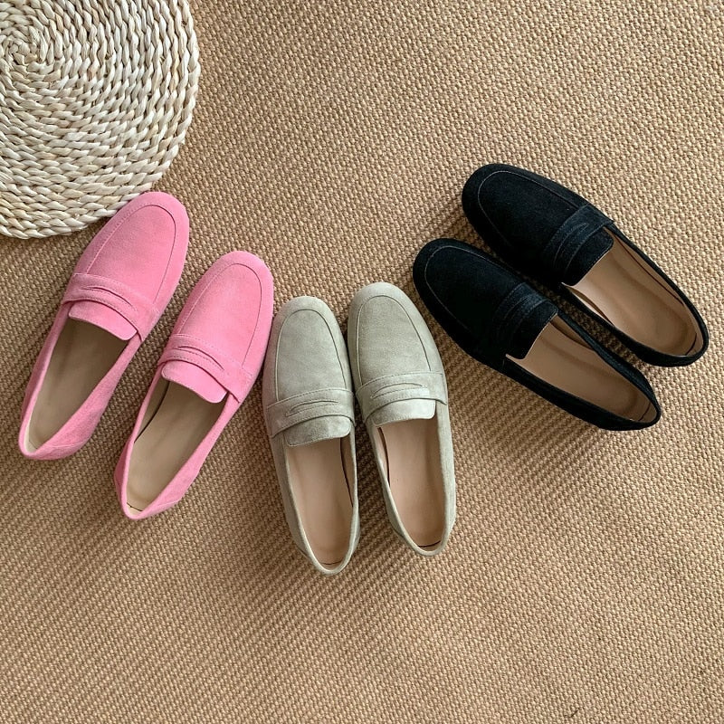 Kiera Kid-Suede & Velvet Loafers. Basic soft kid-suede and velvet loafers in beautiful pastel colors. Comfy and minimalist style flats that are great with any everyday outfits. Comes in suede or velvet upper. How lovable.