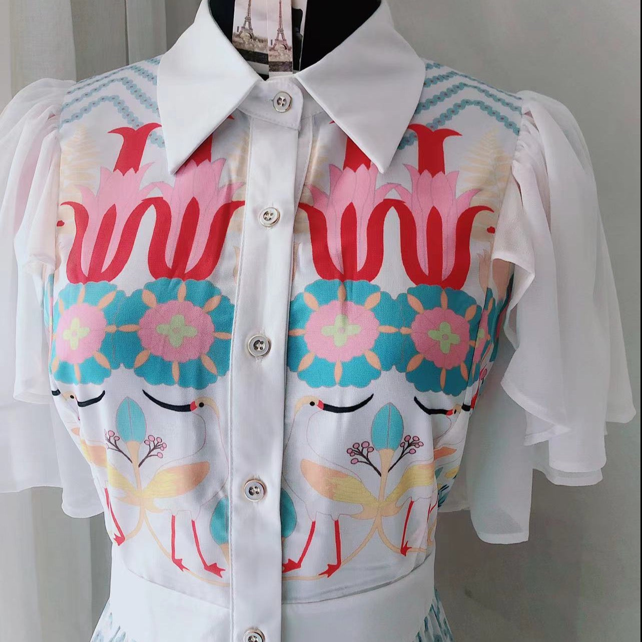 This statement-making Laia dress is sure to be the talk of the town this summer! Crafted from sumptuous floral print fabric and featuring an adorable butterfly sleeves and princess button down collars and eye-catching A-line silhouette. you'll be sure to make heads turn! Perfect for any special occasion - say yes to the dress! 🤩