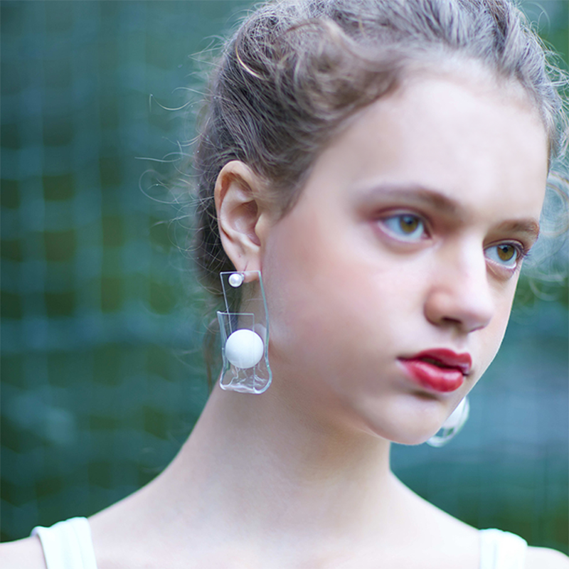 Lexi Clear Panel and Ball Abstract Stud Earrings - 2 Styles