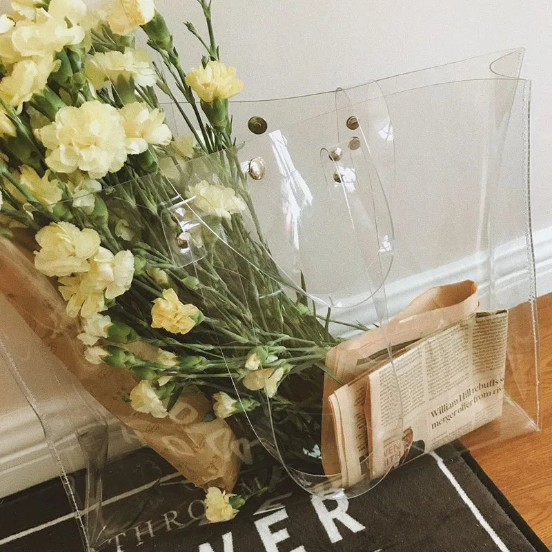 Get ready to shop till you drop (and show off your goodies) with our Lexi Clear PVC Shopper Tote! This spacious tote is perfect for carrying all your essentials. while the clear material adds a trendy touch. With this tote by your side. you'll be the envy of everyone at the mall.