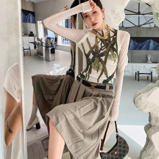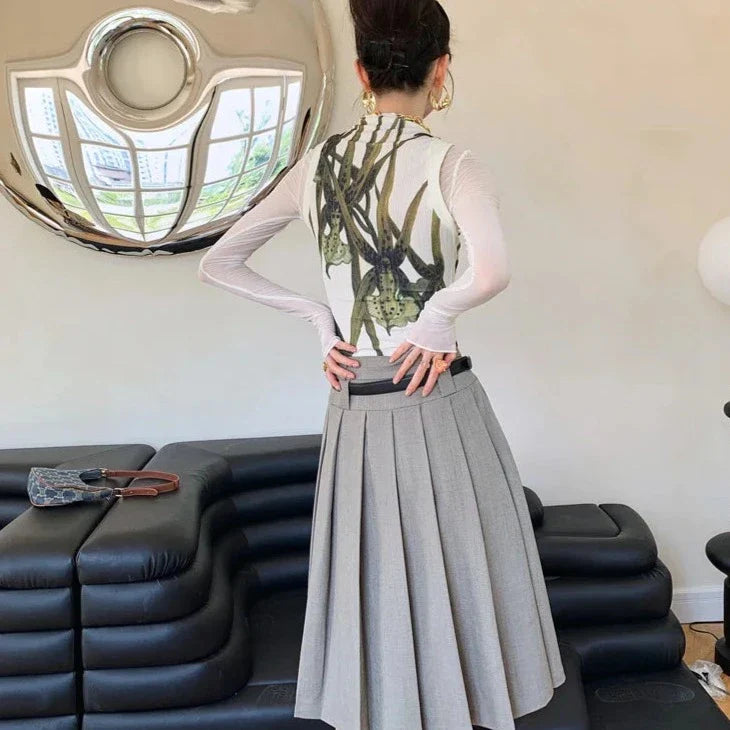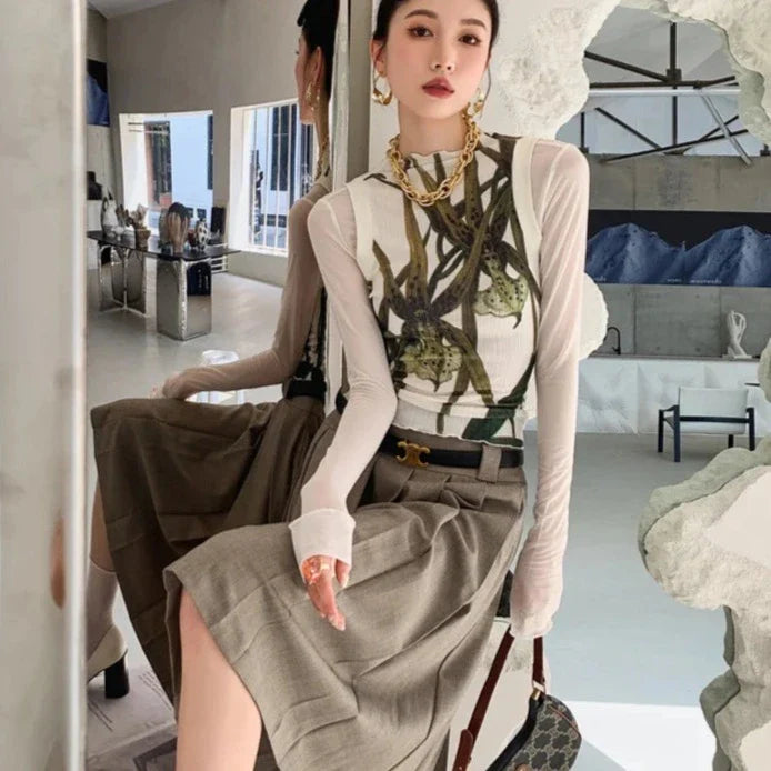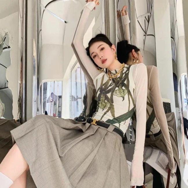 Stay stylish and playful with our Lillies Graphic Print Patchwork Long Sleeve Tees. Indulge in the one-of-a-kind patchwork design of knit top showcasing a stunning lily floral painting print and semi-sheer tissue sleeves. Stay effortlessly lovely and oh-so-stylish!