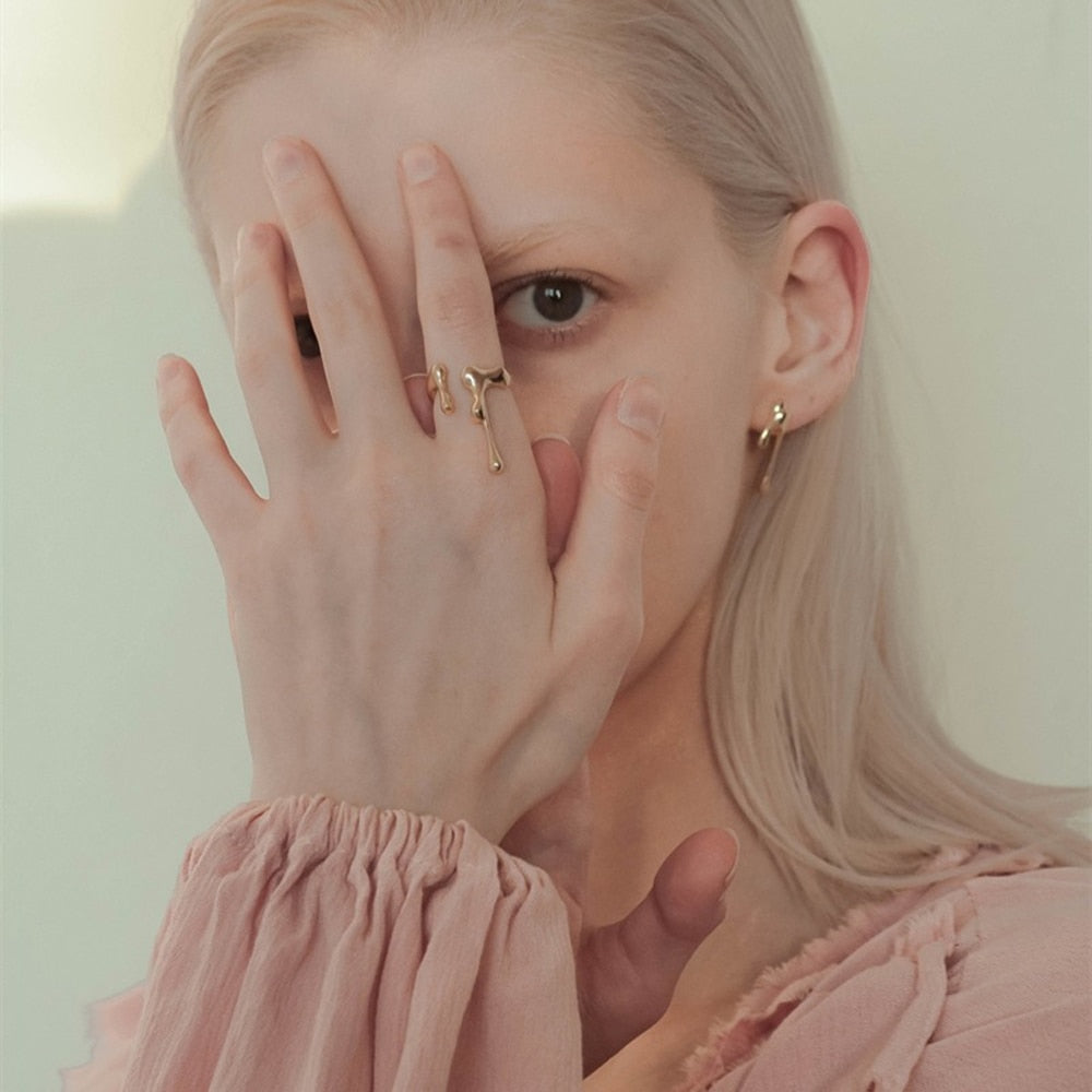 Lloise Dripping Liquid Rings - Gold or Silver. Stylish dripping liquid metal look rings. Minimalist simple yet unique moving image of liquid gold or silver is so cool to look at and sure to gather complement. Adjustable size. Gold or Silver.
