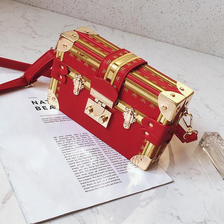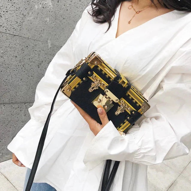 Lock & Embellished Box Clutch Shoulder Bag - 4 Colors