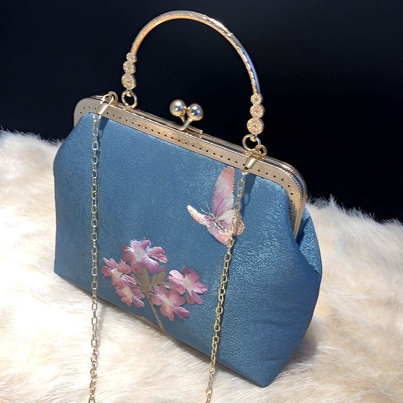 Get ready to feel confident and stylish every time you step out with the one-of-a-kind Lorene Retro Embroidered Handbag! With a stunning blend of exquisite florals and butterfly embroidery. this chic handbag boasts a unique design. With enough room for all your essentials. you'll never have to compromise on convenience for fashion. Elevate your wardrobe today! Now available in denim blue and white.