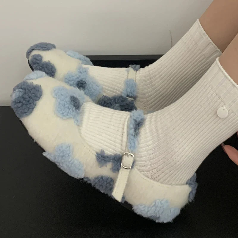 Lorie Vintage Floral Faux Fur Ballet Flats
