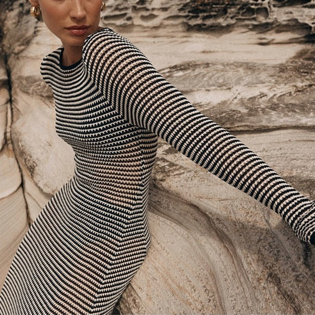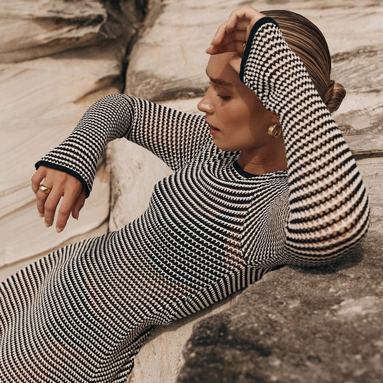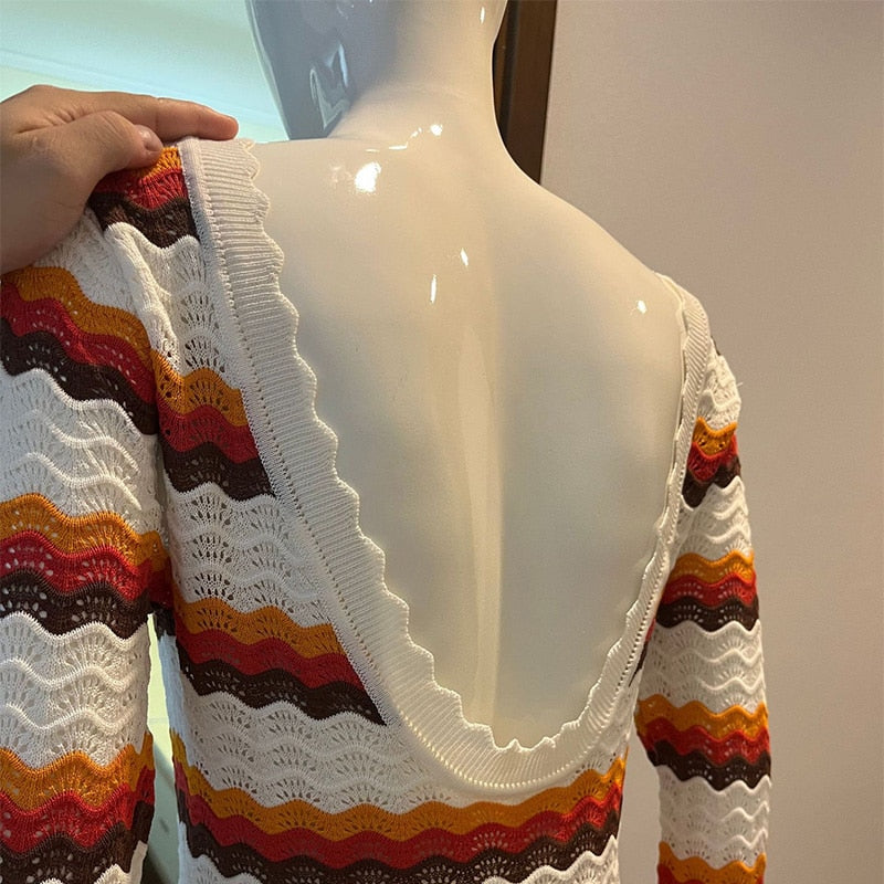 Catch some rays and get up close and personal in our Lua Zigzag Pattern Crochet Open Back Maxi Dress for a look that's perfect for every occasion! Featuring a stunning zigzag stripe crochet pattern in two colors. this trendy pattern knit maxi dress will flatter your figure in no time with a sexy open back.Â