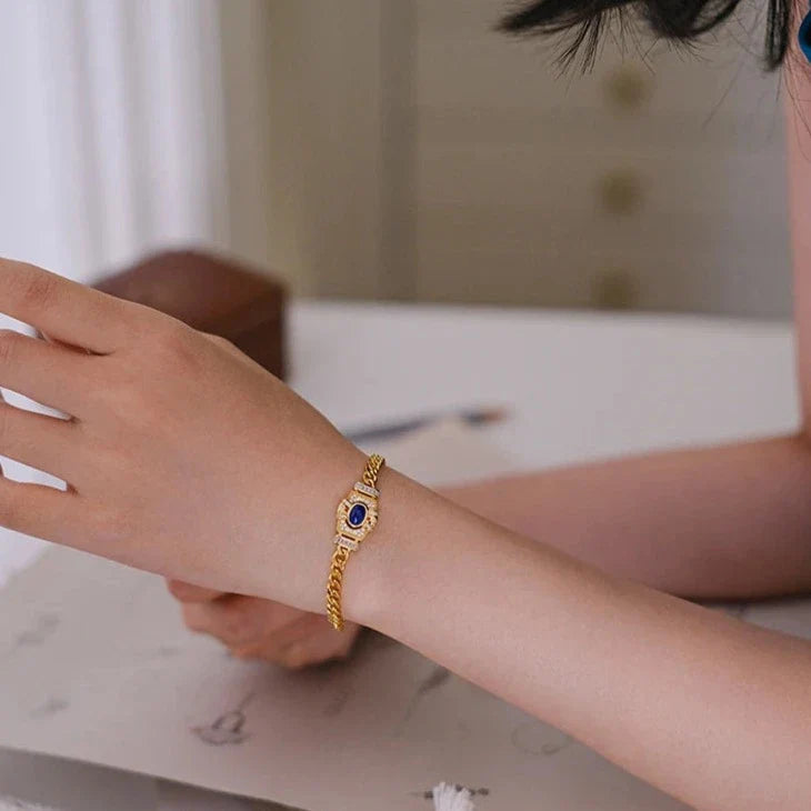 Luxe Vintage Antique Blue Stone CZ Bracelet