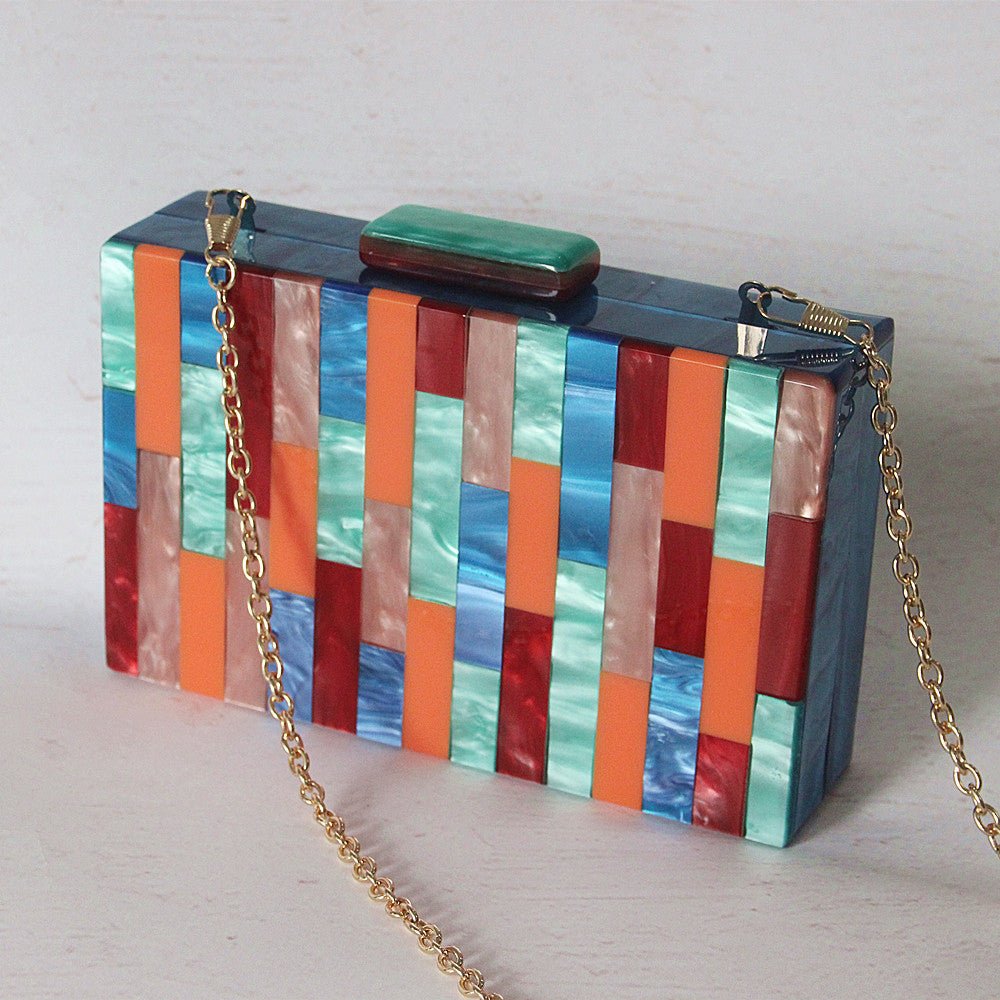 Acrylic Women Cute Evening Bags Colorful Patchwork Party Handbags