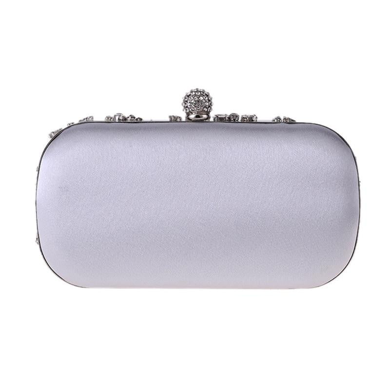 This bag is inlaid with pearls and diamonds. There are 4 colors to choose from: silver. black. red and apricot. Its chain can be disassembled. You can use it as a handbag or a shoulder bag.