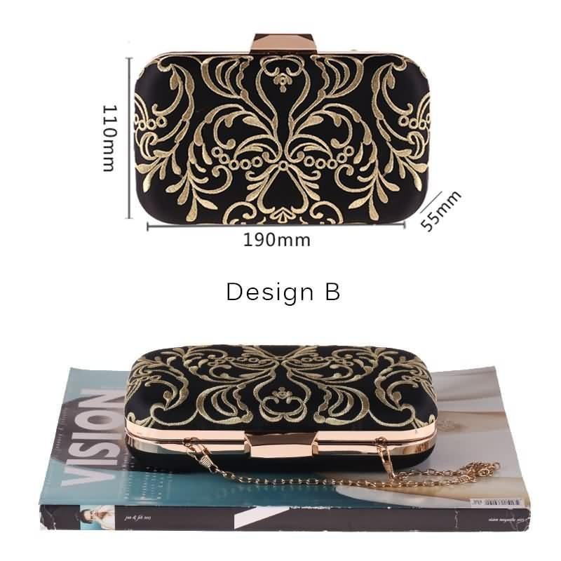 This bag is inlaid with beadings. embroideries. and diamonds. It's made of satin. It's gold and black. There are 2 sizes to choose from. Its chain can be disassembled. You can use it as a handbag or a shoulder bag.
