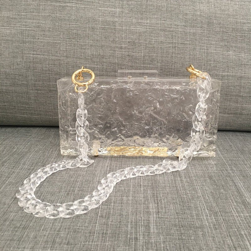 Clear Ice Pattern Acrylic Box Evening Bag Transparent Clutch Purses