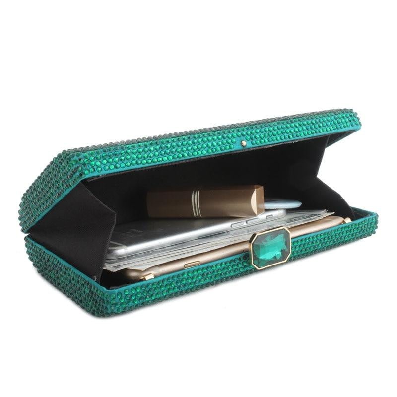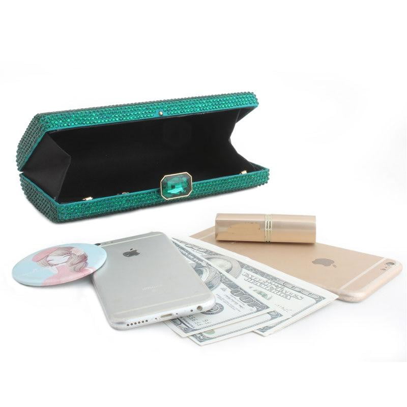 This bag is inlaid with diamonds. There are 7 colors to choose from: red. green. blue. champagne. gold. silver and black. Its chain can be disassembled. You can use it as a handbag or a shoulder bag.