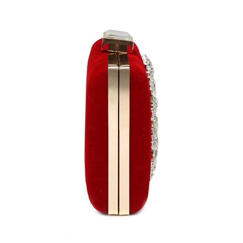 This bag is inlaid with beadings and diamonds. It's made of faux suede and polyester. There are 2 colors to choose from: red and black. Its chain can be disassembled. You can use it as a handbag or a shoulder bag.