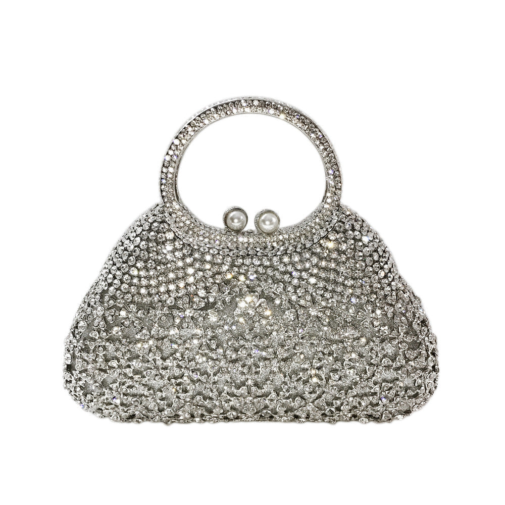 Full Rhinestones Clutch Metal Flower Evening Bag