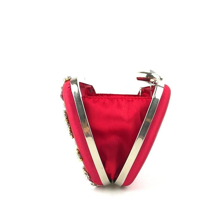This bag is inlaid with beadings and diamonds. It's mainly made of metal. There are 3 colors to choose from: gold. red and black. Its chain can be disassembled. You can use it as a handbag or a shoulder bag.