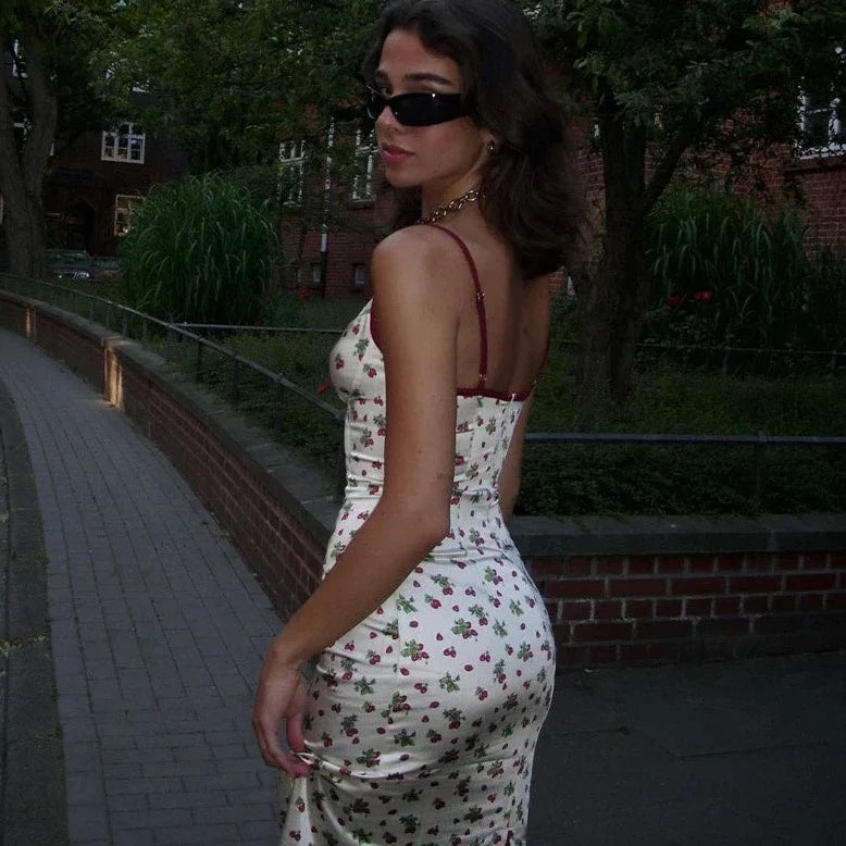 Look pretty in pink with the Lynia Satin Strawberry Slip Dress. Made of luxuriously soft satin. this cute dress drapes perfectly over your silhouette and will keep you comfortable all day long. An eye-catching bohemian strawberry print adds a fun touch to your look. making it perfect for sunny days or party nights!