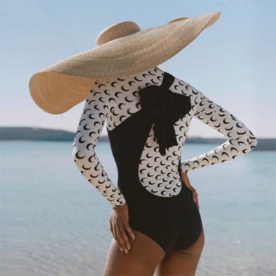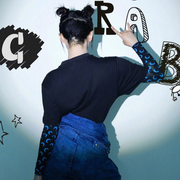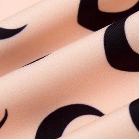 Machella Crescent Moon Prints Tissue Tops. Cool crescent moon pattern prints long sleeve tissue top with o-neck. Great versatile top piece works as is or as a layering piece. Glove fit stretch top has that super trendy look. Wear as is or roll up as cropped style.