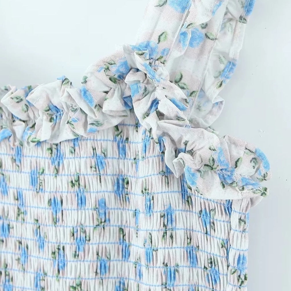 Margie Shirring Smocked Floral Dress - 2 Colors. Sweetest vintage style floral mini dress with shirring details and spaghetti straps. Shirring details with cute ruffling trims. this midi dress is beautifully feminine and romantic.Â