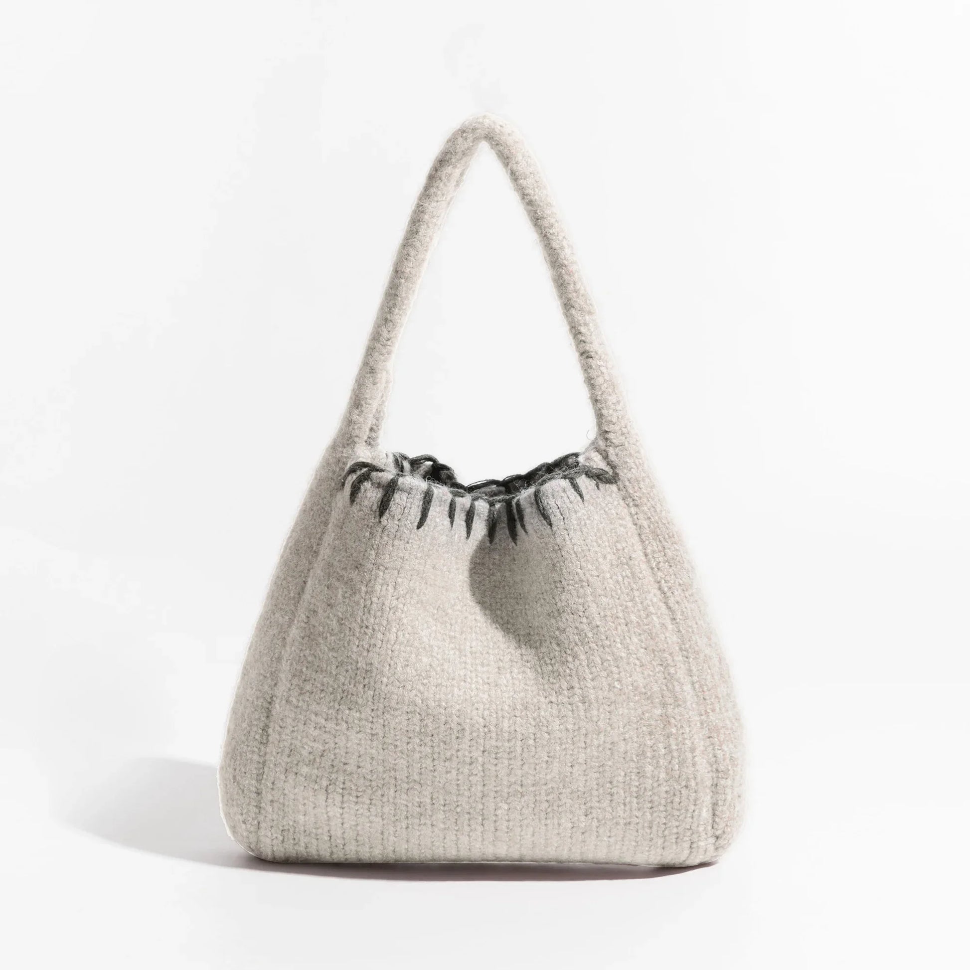Stay stylish and cozy with our Marie Wool Knit Totes! Available in 7 vibrant colors with color contrasting overedge stitching accent. These totes are crafted with top-notch wool knit to complement your sweater style. even your "Ugly" Christmas Sweater! (Haha. see what we did there?).