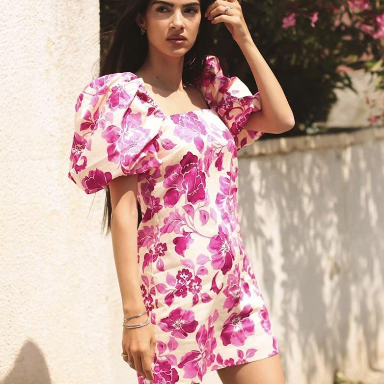 Be the showstopper in the Marion Floral Print Puff Short Sleeve Dress! Captivate with its classy yet whimsical look boasting intricate floral prints. puff sleeves. a popping pink hue. and alluring square neckline. Prepare to bloom and steal the spotlight at any event you attend--wear off-the-shoulder for extra drama! A perfect dress to wear to wedding or cocktail parties.