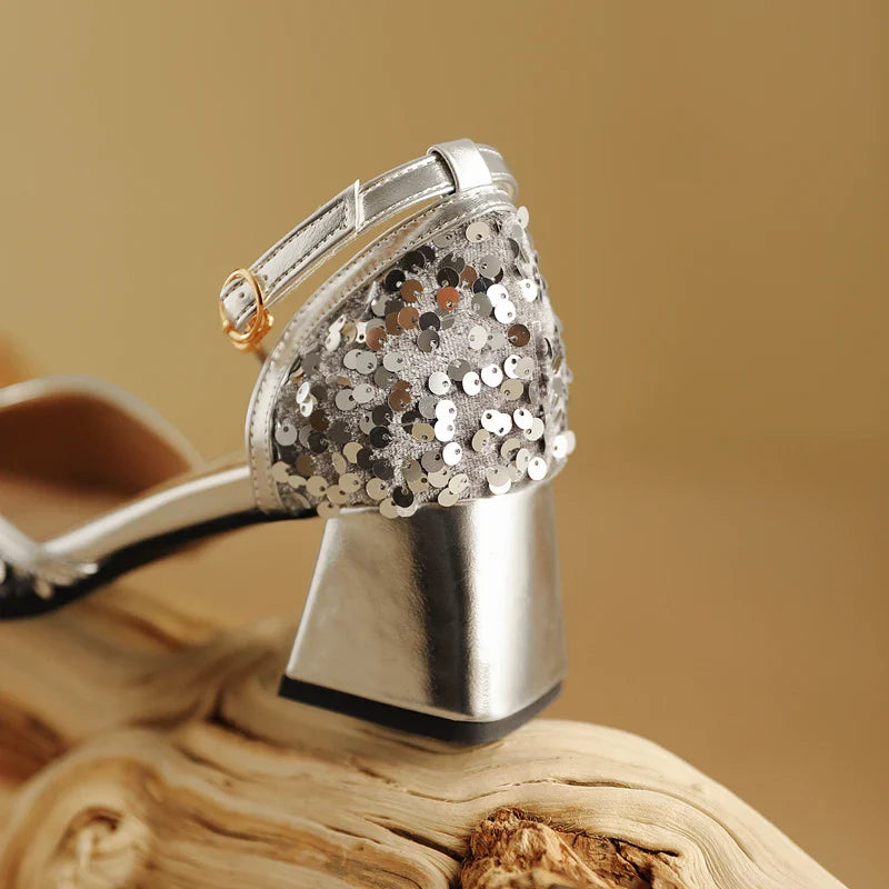 Add a touch of sparkle to your step with the Marley Metallic Sequin Ankle Strap Sandals. These glamorous shoes feature metallic sequins and a comfortable ankle strap. making them perfect for a night out or special occasion. Shine bright and stand out from the crowd with these show-stopping sandals.