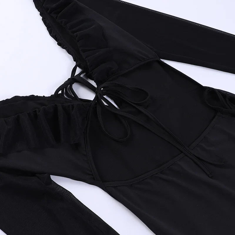 Mesh Hollow Long Sleeved Split Bodycon Party Vocation Cut Out Dresses